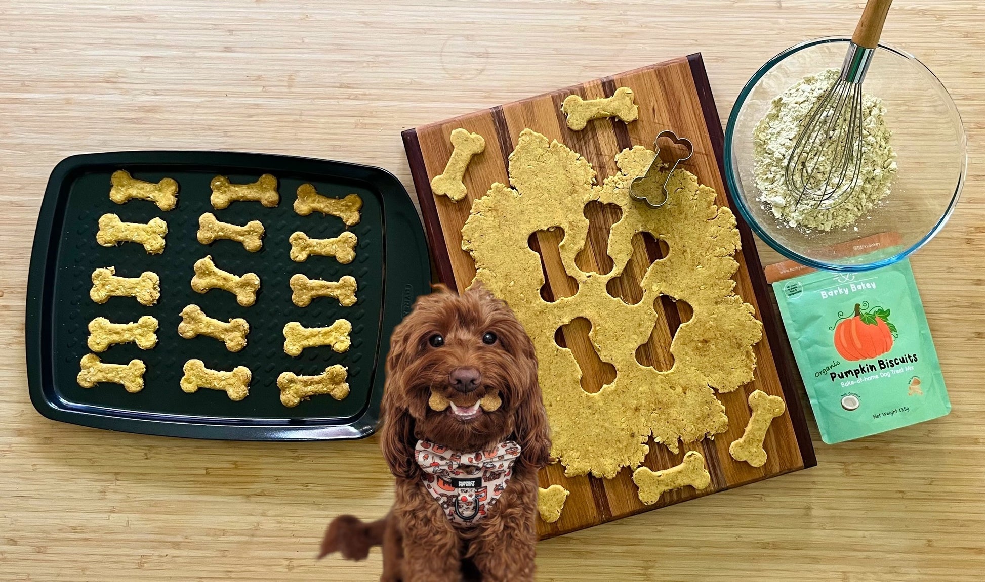 Get everything you need to bake delicious, homemade organic dog treats with our special Autumn bundle! This package includes: