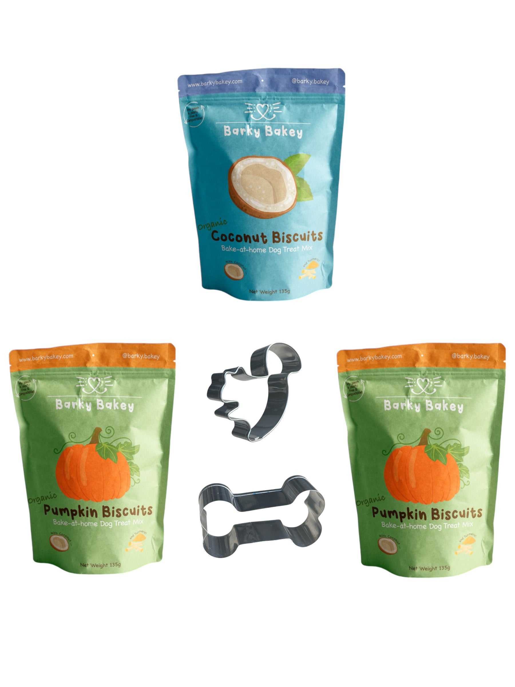 Bundle: 2 Pumpkin Pouches + 1 Coconut Pouch + TWO Free Cookie Cutters
